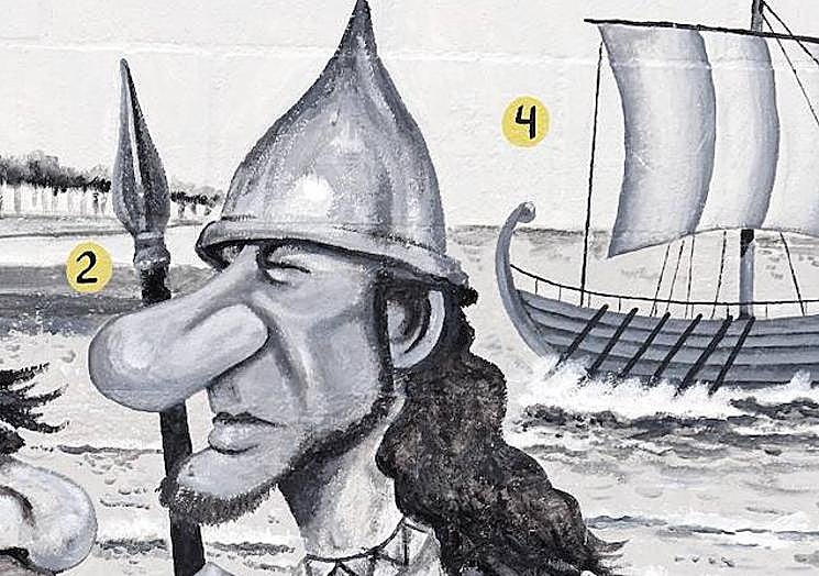No characters from that first Iberian and Phoenician Malaga of Cerro del Villar and the surrounding area have come down to us, but Ángel Idígoras has depicted them in the form of a warrior with a spear, this time without sardines, and boats from the East that brought the first settlers to the city.
