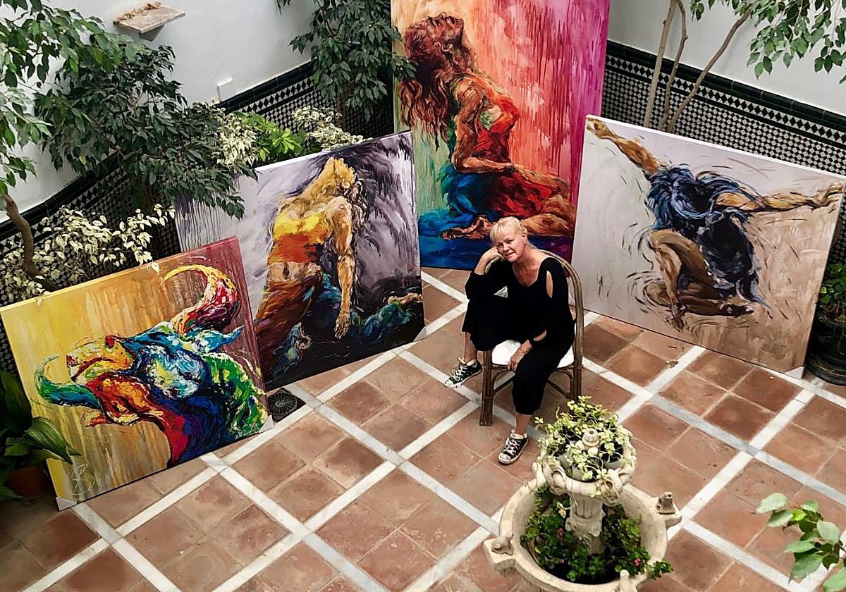 Most artists spend several years at art college or university in order to develop their techniques and perfect their creative talents, and once this is achieved, they then aspire to show their paintings in galleries or exhibitions in the hope of receiving fame and recognition. However, not all artists follow this practice, especially Bettina Eriksen, a self-taught artist who has lived on the Costa del Sol for more than 25 years. Bettina shies away from exhibitions, preferring to invite people to her studio in the centre of Fuengirola to view her work, and, although difficult to believe, she has had no training. She believes that her paintings convey the "joy of life, human will power, liberty, passion, sensuality and emotion". Her large Andalusian-theme canvases created with bold colours verify this.