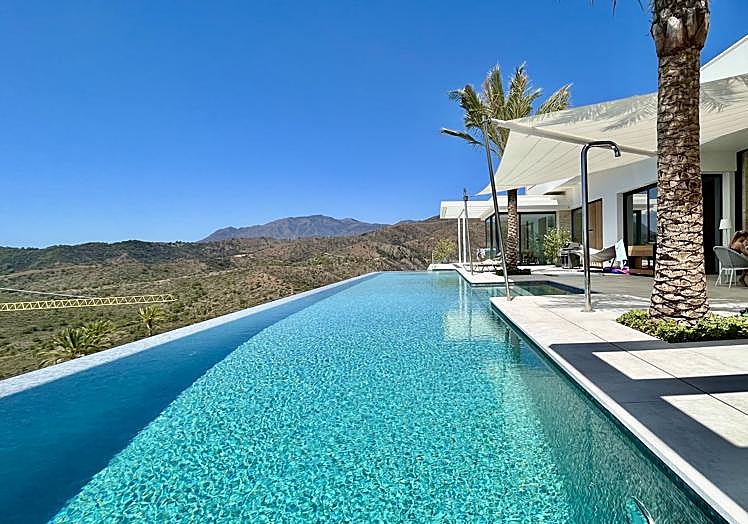 A pool should be close to the house, as it will quickly become the centre of your home. We live outside in Andalusia for what feels like 10 months a year, water is extremely decorative and the outdoor life is one of the reason people move to the Costa del Sol. When planning a dream home, the pool should be included in the design. It serves as the centrepiece, as the illuminated pool water and the turquoise marbled tiles give a unique lighting effect. I recommend building pools on the ground floor, close enough to kitchen and the terrace to be seen at all times, but far enough away to avoid splashing water. The pool should always be visible from as many angles of the house as possible and be accompanied by a large outdoor shower (ideally with a WC), positioned out of sight.