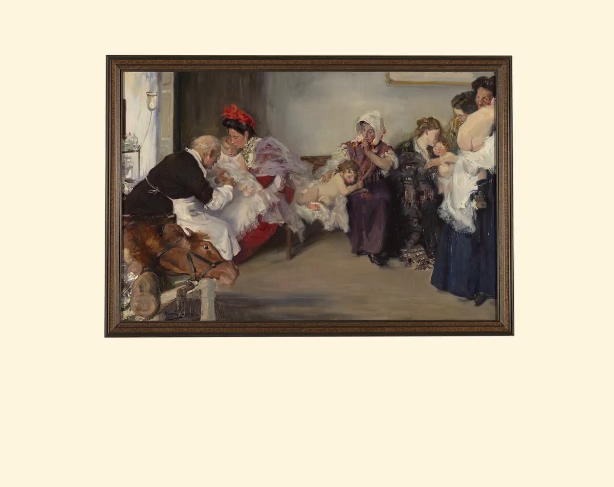 The scene depicts a tender moment. A row of mothers with some of their children already undressed wait in line for the doctor to inoculate their infants. The first in line, elegantly dressed and with her son ready for the jab, sits apart from the rest; their clothing is simpler, a more everyday wardrobe. The differences in their social class did not escape the keen gaze of Vicente Borrás Abella from Valencia when he painted La Vacuna (The Vaccine), a delightful work from the Prado that was kept at the Museum of Malaga, reflecting the popularisation of healthcare in Spain at the beginning of the 20th century. It was for this very reason - the chronicling of an era - that the argument was made for it to be included in the exhibition Arte y transformaciones sociales en España (1885-1910) (Art and Social Change in Spain) , which is on display at the Madrid museum until September. Since the work was already travelling to the museum of museums, the restoration department there took the opportunity to give the piece the once-over. Therein lay some big surprises.