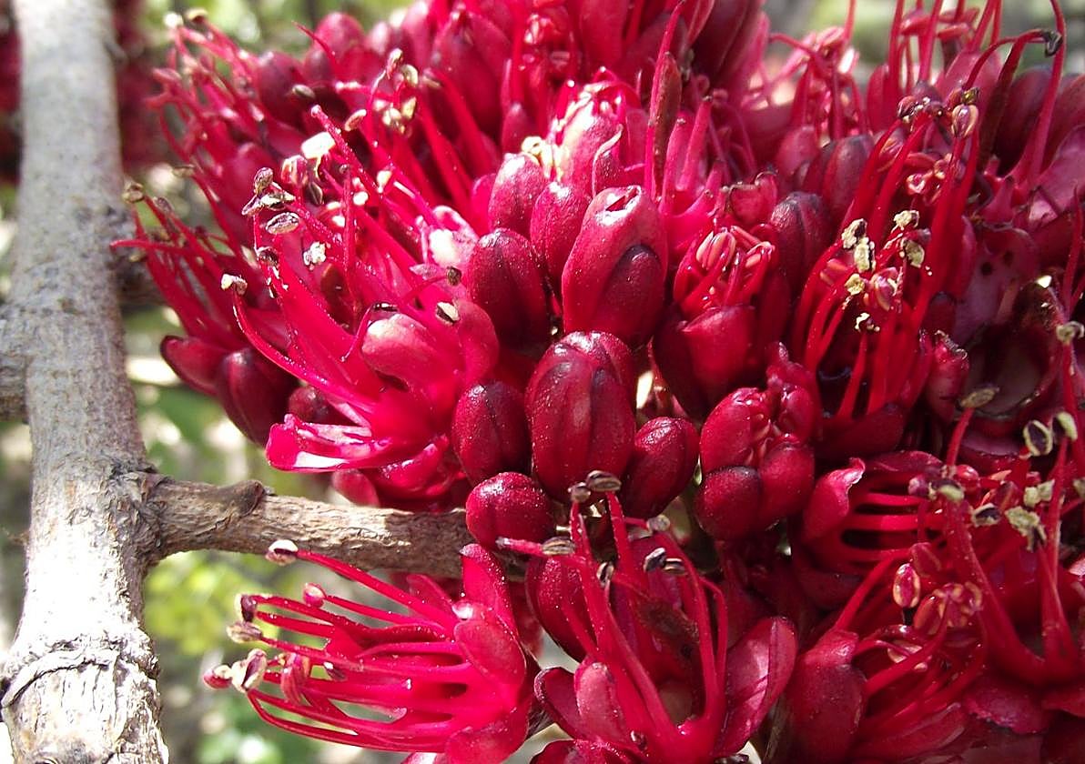 The weeping Boer-bean (Schotia brachypetala), also known as the tree fuchsia or African greenheart, is a small to medium tree native to South Africa. It typically reaches between five and 12 metres, developing a dense, spreading crown of dark green foliage.