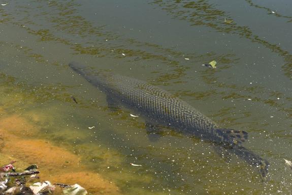What many thought was a crocodile in the artifical lake in Marbella's La Represa park was identified as an alligator gar, a fish native to North America.