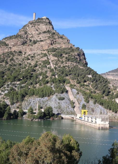 The turbines pump the water from the lower reservoir to a higher dam at the top of the mountain, and when the conditions of the power grid and the market required it, it is allowed to fall through a pressure pipe, onto the turbines and generate electrical power, they explain. The agua isn't lost or used, it just accumulates in the reservoir below. To power the turbines, three cubic hectometres of water need to fall.