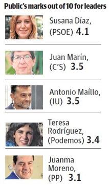 In Malaga province, which returns 17 of the 155 regional MPs to Seville, based on proportional representation, the party split could be very similar to 2015, with some fall-off in support for the PP to Ciudadanos.