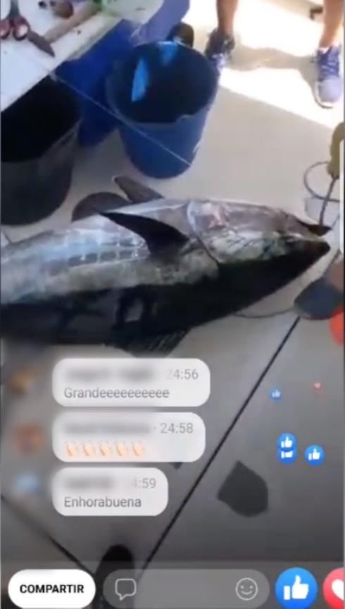 The fishermen were reporting excitedly on the catch and viewers were writing comments back such as "nice one" and "congratulations" as they hauled the tuna on board.