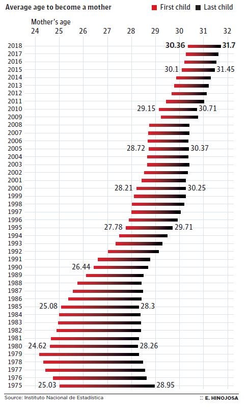 Some attribute this fall in the birth rate to the economic crisis, but most experts in demographics believe the recession was only an aggravating factor in a phenomenon which has more to do with the composition of the population pyramid and social changes. The generation of women from the 'baby boom' period are no longer of fertile age and, given that later generations are less numerous, every women would need to have more children in order for the birth rate to be maintained.