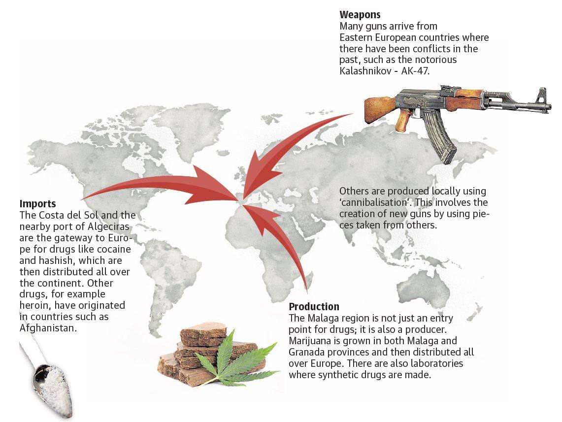 He can often be seen driving around in a luxury car, visiting shops where he spends a great deal of money on designer clothes, eating in good restaurants and closing business deals. For his neighbours, who also live in the labyrinth of residential developments on the Costa del Sol, he is just another rich foreigner. He goes almost unnoticed. What they don't realise is that he is carrying a gun under his shirt and he sells drugs. He is a trafficker. One of the many who, together with their gang members, have come to live in Malaga, the place at which their paths cross.