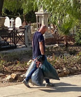 While some carted away wheelbarrows full of old flower pots from behind the church, others pruned an overgrown oleander, weeded and piled autumn leaves into sacks, or cleaned up some of the gravestones.