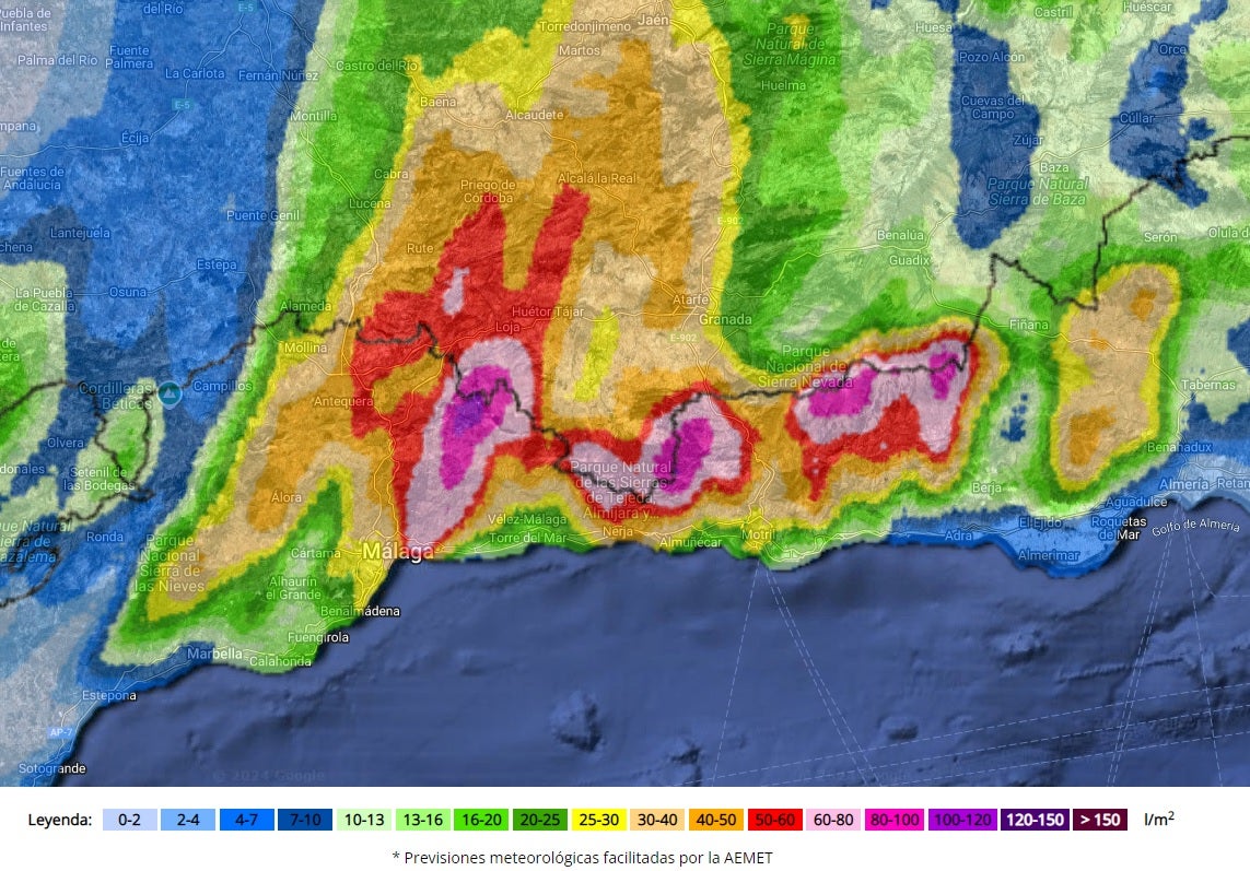 In line with its weather models, Aemet has today updated the warning, which remains at amber level for Malaga city, Costa del Sol, Guadalhorce valley and Axarquia. It has also refined its scope of possible heavy rainfall. "The warning refers to the eastern part of the province," Aemet said on its website. It has also slightly raised the threshold of what is to be expected, with up to 40mm in one hour, and up to 105mm in 12 hours. The risk remains active from 3am on Wednesday until 8am on Thursday.