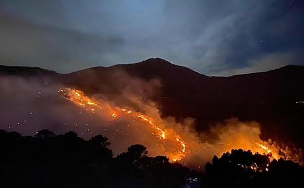 The fire started in the Paraje de la Resinera area and affects the municipalities of Pujerra, Júzcar and Benahavís, according to the Junta de Andalucía in a statement.
