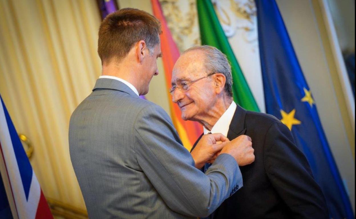 The British ambassador stressed that relations between Malaga and the UK are stronger than ever before. In recognition of such valuable services, "the Queen has named [the mayor] Honorary Officer of the Most Excellent Order of the British Empire", he said just before pinning the medal to his lapel.