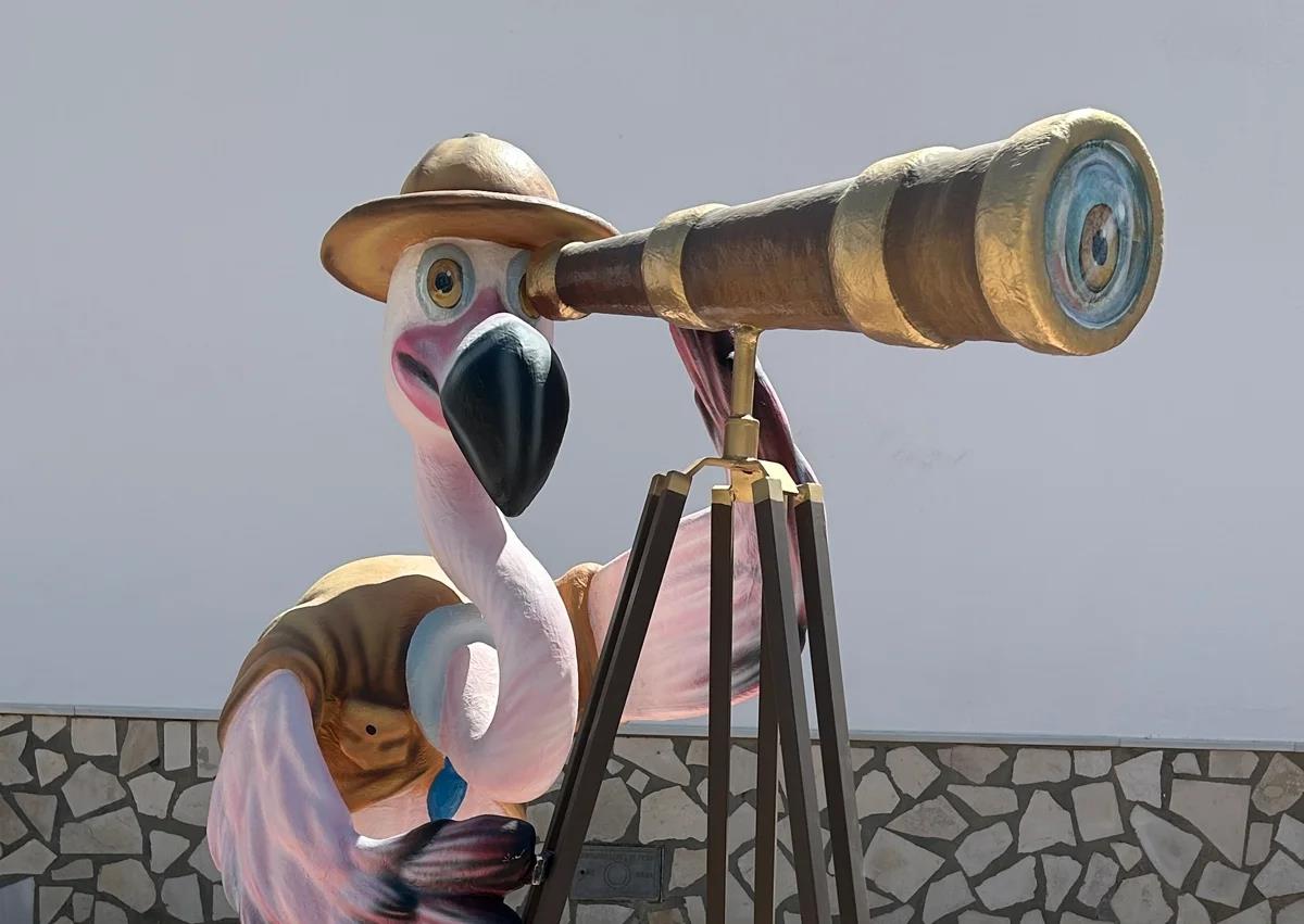 Each flamingo characterises something directly related to the traditions, events or notable figures of Fuente de Piedra. The route begins on Avenida de Andalucía, the main road into the town, where the Explorer Flamingo is located. This figure, observing two small chicks, refers to the official ringing of flamingos carried out every summer at the lake ('laguna'), a fundamental practice for the study and conservation of this species. Thanks to the abundant spring rains this year, the wetland is once again in optimal conditions for its natural development.
