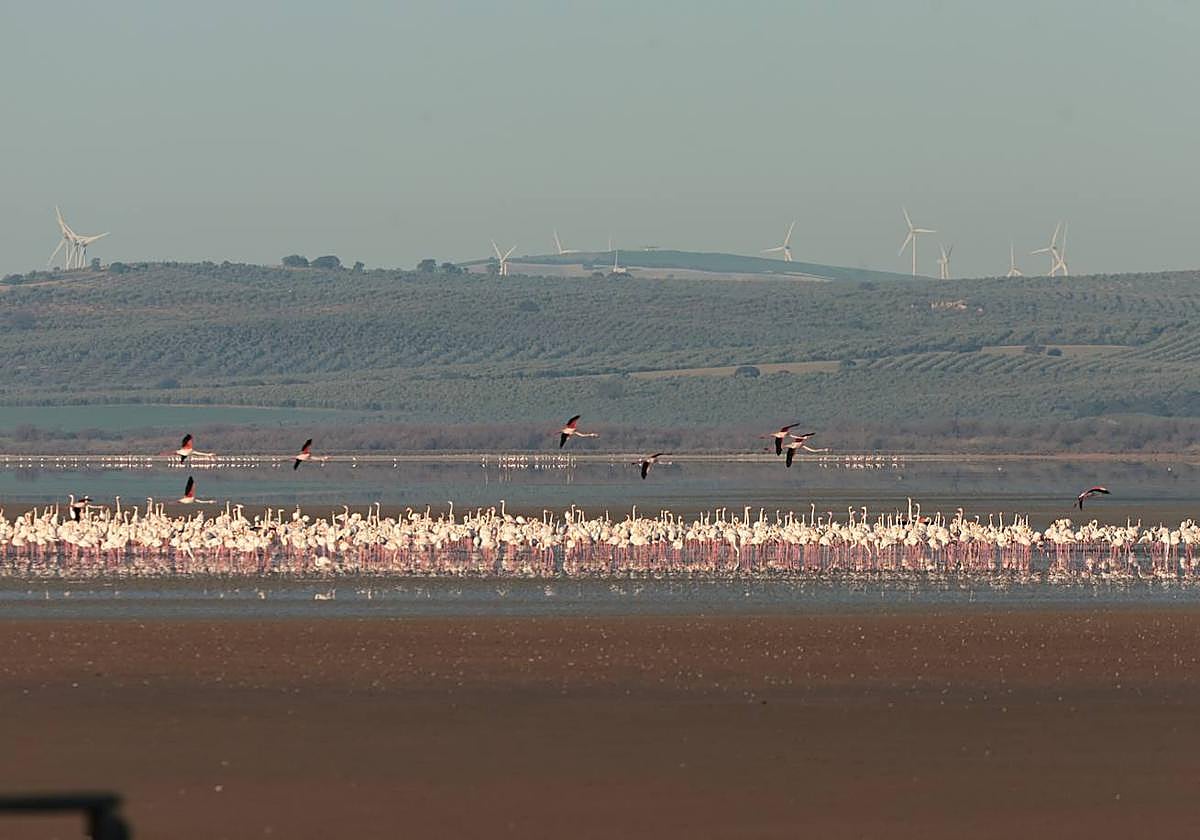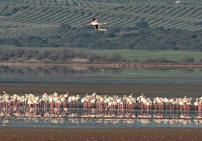 As your gaze reaches the lake, the contrast with the image from a few months ago, when this same place seemed like a salt desert, is evident. The rains, though scarce, have brought life back to the natural landscape of Fuente de Piedra.