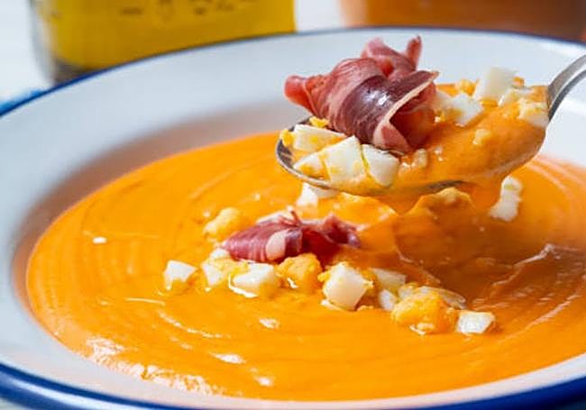 Its main ingredients are tomato, two or three days old bread, extra virgin olive oil (preferably of the hojiblanca variety) and salt. Pepper and vinegar are usually optional. It is typically complemented with other ingredients, such as ham and egg cut into small pieces, or tuna. Some people add a dash of extra virgin olive oil or even tomatoes or croutons. The Arte de Cozina restaurant serves a version made from oranges which was popular in earlier times.