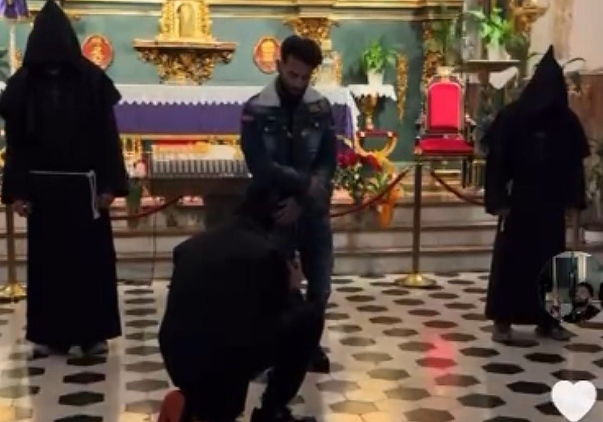The 14-second video uploaded to his TikTok account shows the artist 2bleflow dancing in the Virgen de los Remedios Coronada chapel accompanied by extras dressed as penitents in black robes and pointed hoods