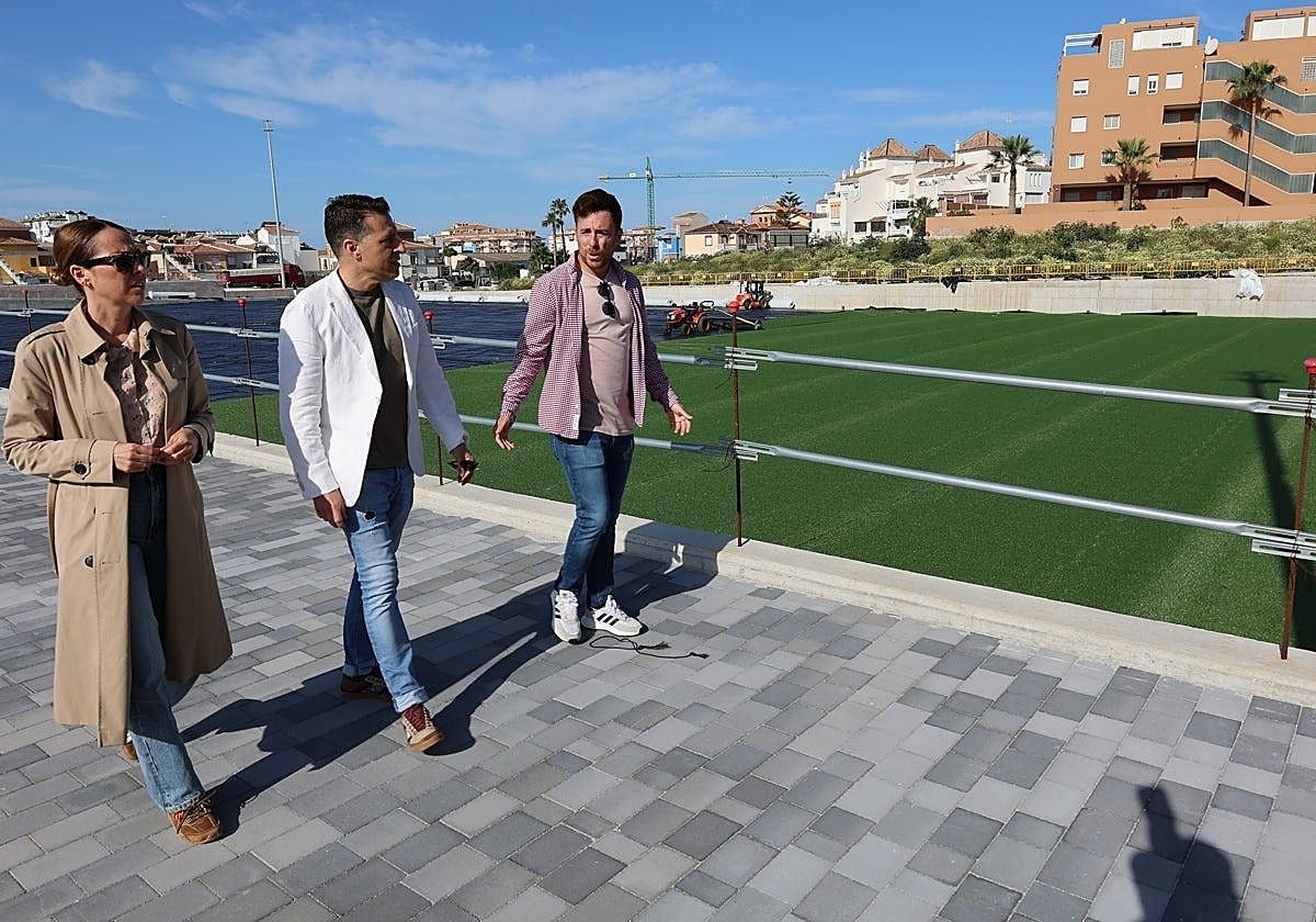 Mayor of Torrox, Óscar Medina, visited the new pitch in the Santa Rosa residential area on Tuesday 22 April to see the installation of the artificial turf.