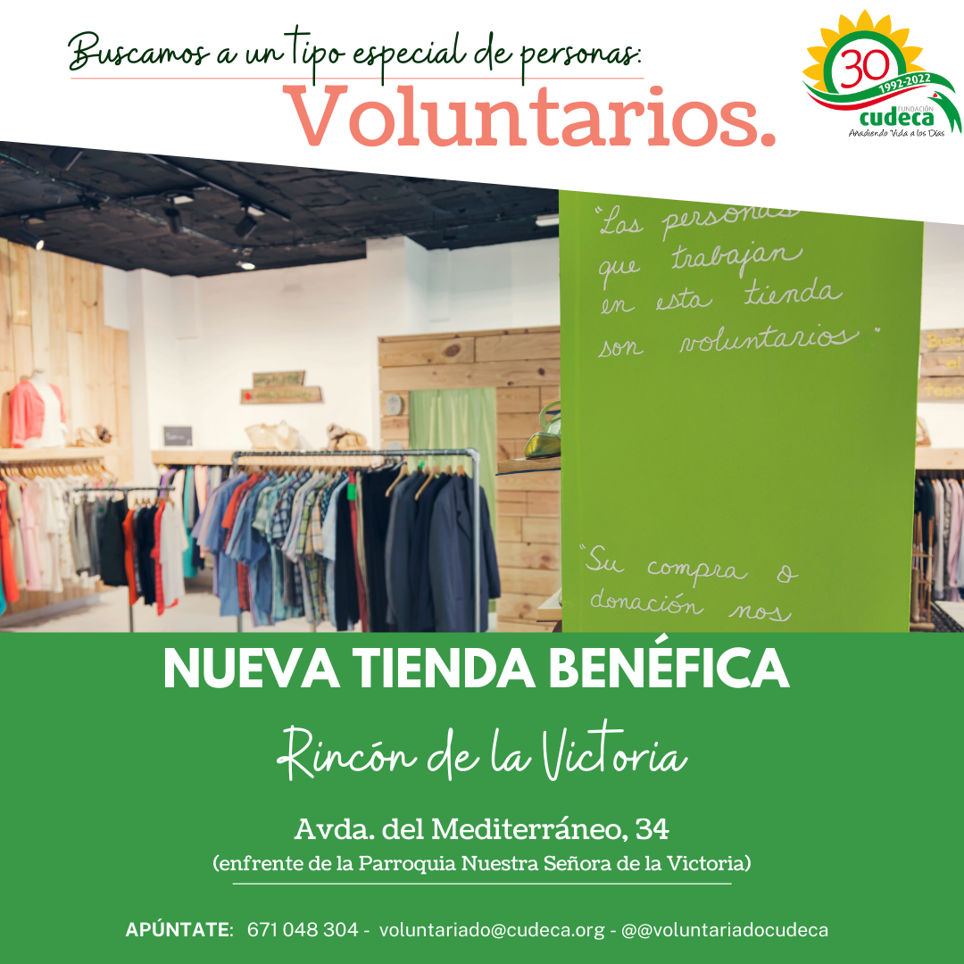 The Cudeca Foundation needs volunteers for its new charity shop which is soon to open on Avenida del Mediterráneo in Rincón de la Victoria, opposite the Nuestra Señora de la Victoria parish church.