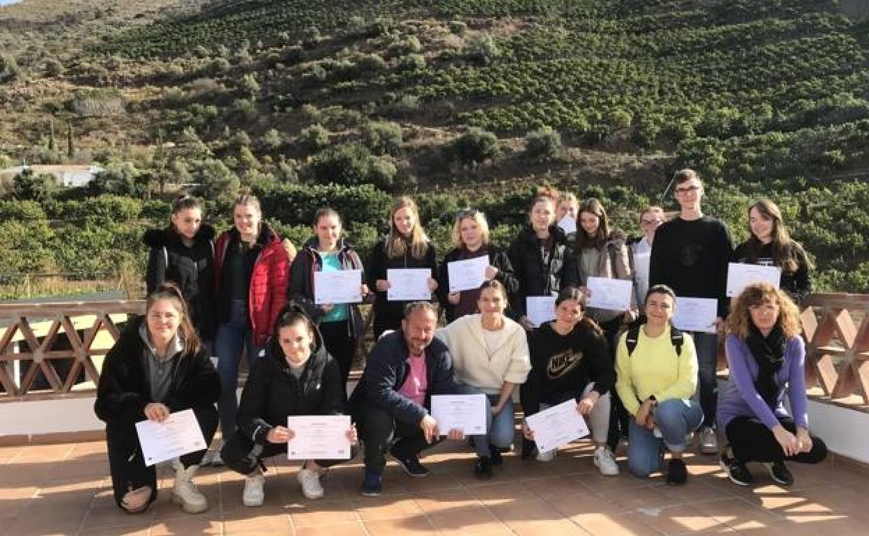 The trip has been made possible thanks to the EU’s Erasmus+ exchange programme, in collaboration with the Malaga firm Universal Mobility. Fourteen students and two teachers have spent several weeks working closely with staff, technicians and farmers of the Vélez-Málaga company Managú and its eco BIOrigen seal, to learn more about the workings of a sector which is one of the main economic drivers of the Axarquía.