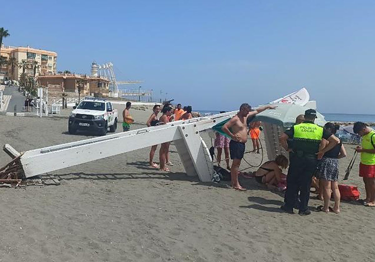 Tuesday's event in Torrox was similar to the one that happened in July 2016 in Nerja. Then it was on the Burriana beach, where a lifeguard hired by the town hall, Juan Castillo, was slightly bruised after the wooden turret he was on broke due to its poor state of repair.