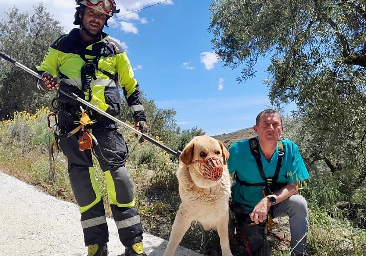 Consorcio Provincial de Bomberos firefighters, police officers and a vet were called out to rescue the dog on Saturday 18 May after it became trapped in the chasm in the Arroyo de los Moriscos area of the municipality.