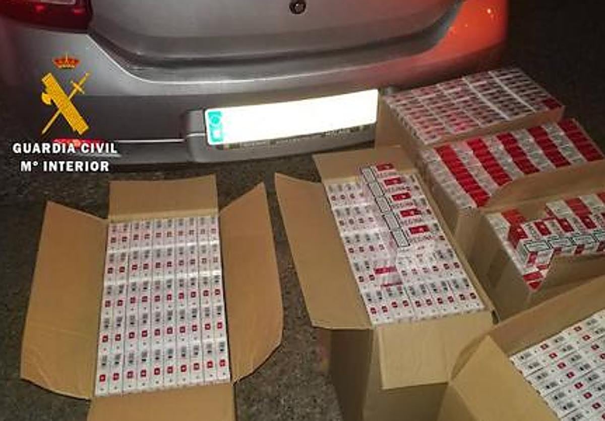 Spanish customs officers together with the Guardia Civil have seized 12,250 packets of contraband cigarettes, some of which were being transported inside a vehicle, while the rest were being stored in a garage in Torre del Mar, on the Costa del Sol.