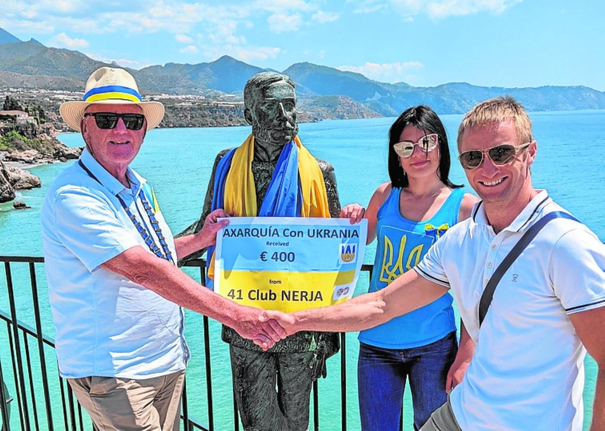 Nerja's 41 Club Chairman Peter MacLeod presented a 400-euro donation to Gareth Arnold, one of the main coordinators of the charity 'Axarquia con Ucrania' (Axarquía with Ukraine) last Friday.