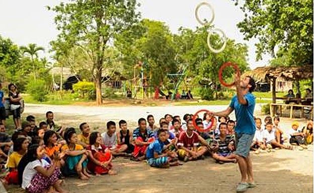 The first of these adventures began in the spring of 2012, when he and six friends flew to Bangkok. There they intended to set up the project 'La Caravana Picartista', with the idea of returning to Spain in a convoy via the legendary Silk Road, performing artistic juggling shows and video projections in the streets as they went.