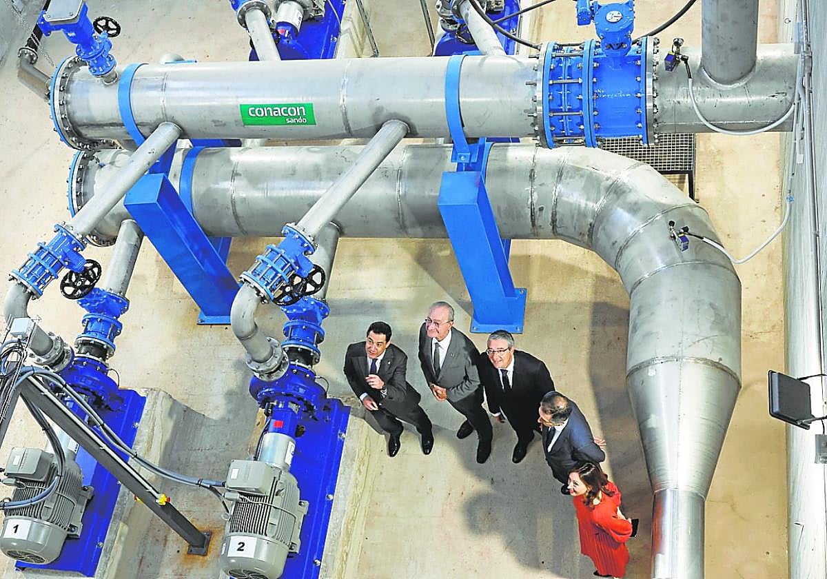The president of the regional government, Juanma Moreno, pressed the button that operates the system, which now means valuable recycled water will be sent to the drought-stricken farms of eastern Malaga province.