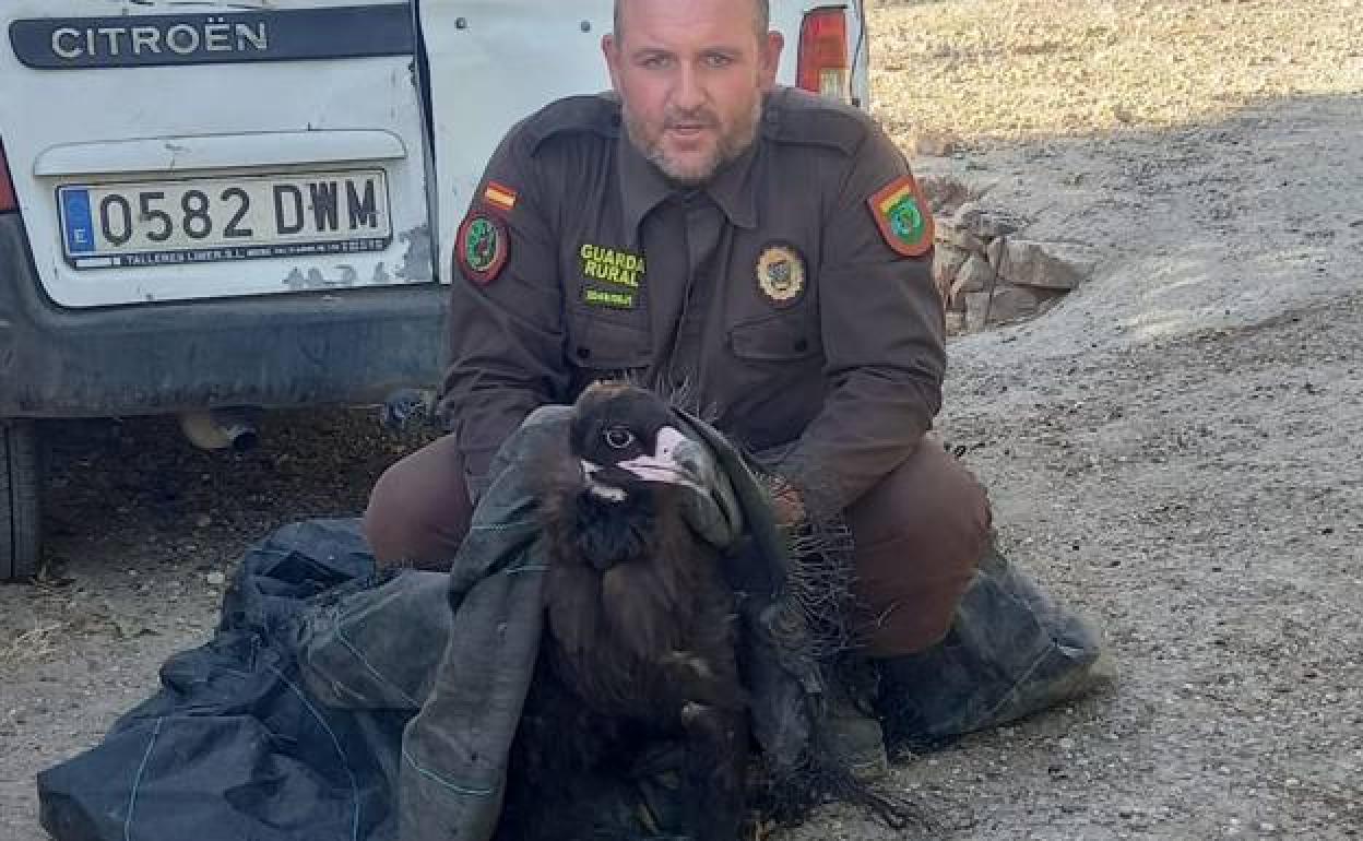 Julio Fernández, a rural security guard from Frigiliana, and officers from the Guardia Civil’s Seprona nature protection force, have rescued a black vulture which had become disorientated and was unable to fly. The bird, which weighed about 12 kilos and had a wingspan of 2.5 metres, was spotted beside the country road between Frigiliana and Torrox, near the Los Caracoles hotel and restaurant.