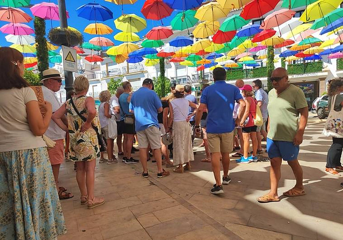 The protesters, most of whom were foreign residents, gathered outside the town hall to demand an end to the noise which they say is caused by hospitality businesses in the area, including beach bars and clubs.