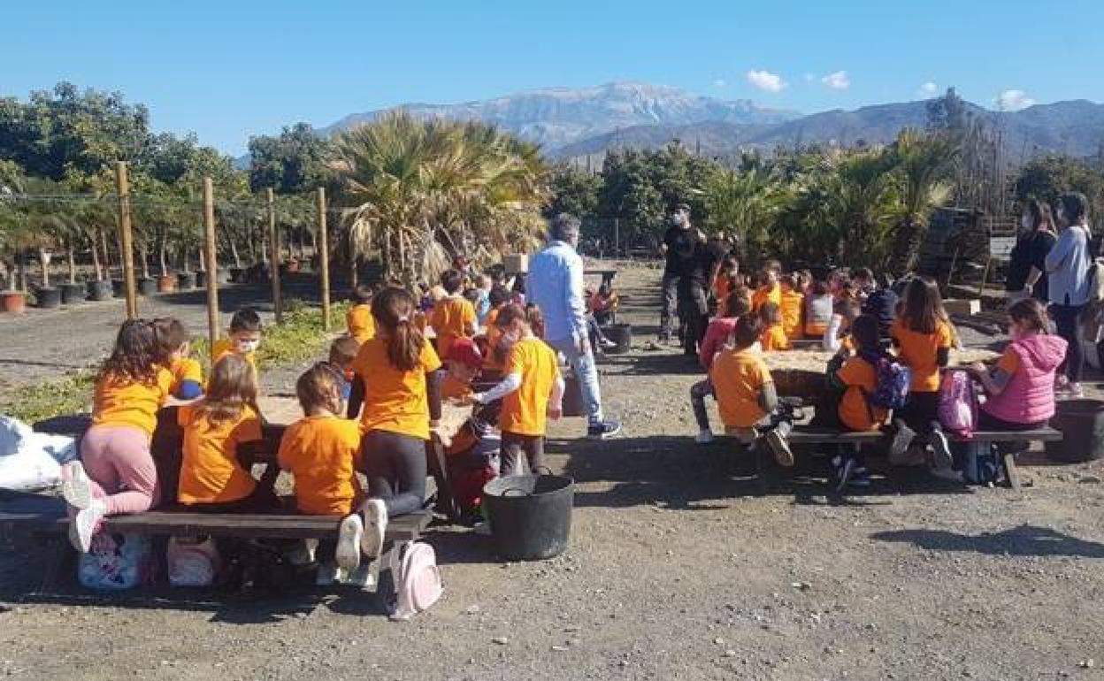 On Wednesday around fifty pupils from La Axarquia primary school in Vélez-Málaga made seed bombs using native species of flora, which will be used for the recovery of areas of woodland devastated by wild fires.