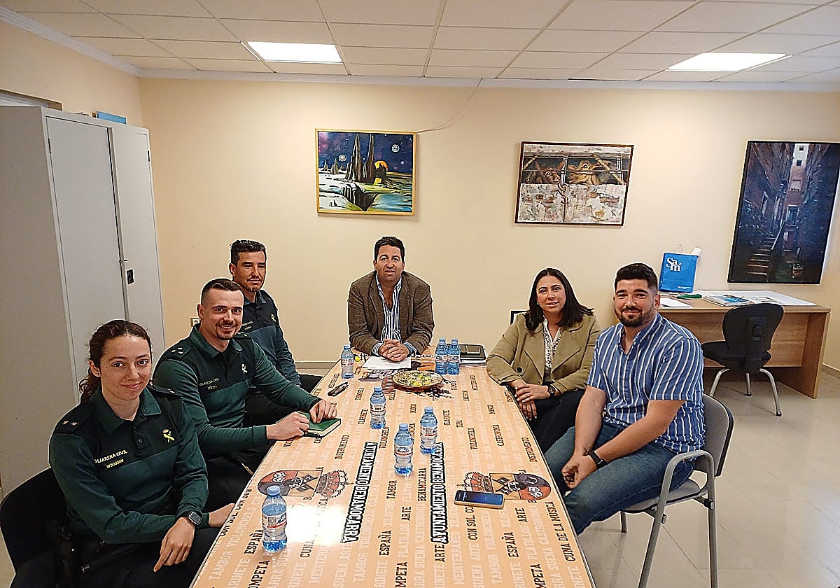 The mayor, Abdeslam Lucena, the deputy mayor, Marilé Muñiz, and the councillor for public safety, José Ramón Palomo, welcomed the head of the Vélez-Málaga Guardia Civil, Francisco Manuel García Rodríguez, as well as Sergeant Manuel Sarría and Lieutenant Cristina Sánchez, to the town hall for a meeting focused on the public safety situation in the town.