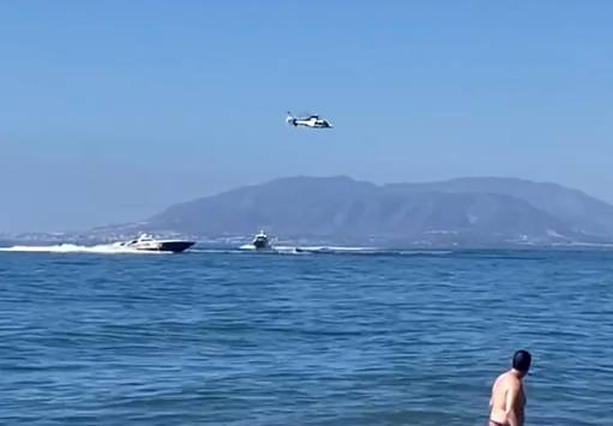 Watch as spectacular boat and helicopter chase unfolds off a Costa del Sol beach
