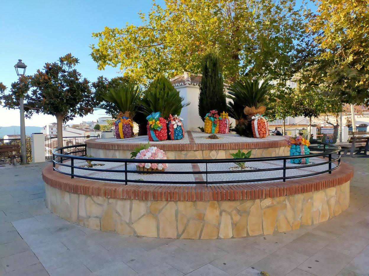 Canillas de Aceituno's streets and parks are full of colourful presents, angels, flowers and Christmas trees made from plastic bottles
