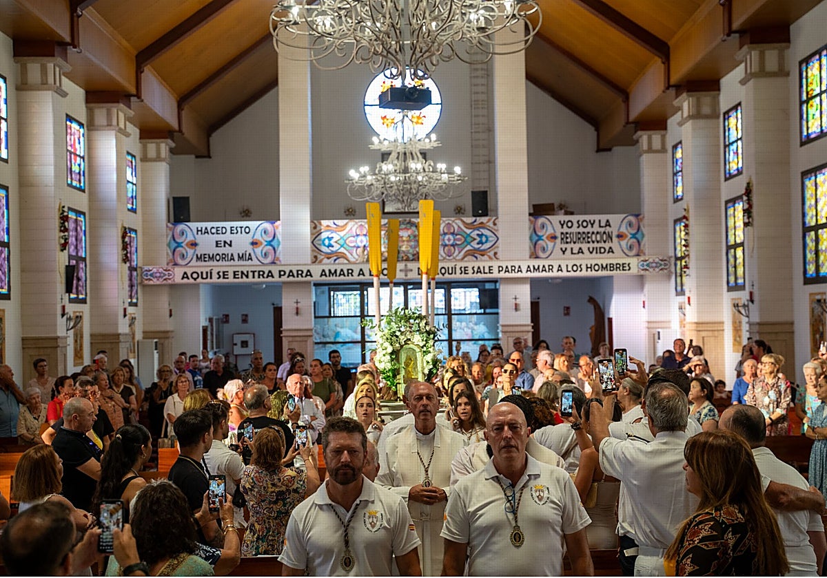 The Virgen del Carmen church opened its doors to the public on Sunday to celebrate the arrival of La Chiquita, a small image of the Virgen del Carmen who lives practically all year round at a depth of nine metres in a cave in Laja Bermeja, on the seabed of Benalmádena marina. Every year, on the Sunday before the celebration of the Virgen del Carmen (16 July), members of the Benalmádena divers’ association enter the cave, take the Virgin out and transfer her to land. She only spends a few days here, between Capitanía and the parish church of the Virgen del Carmen.