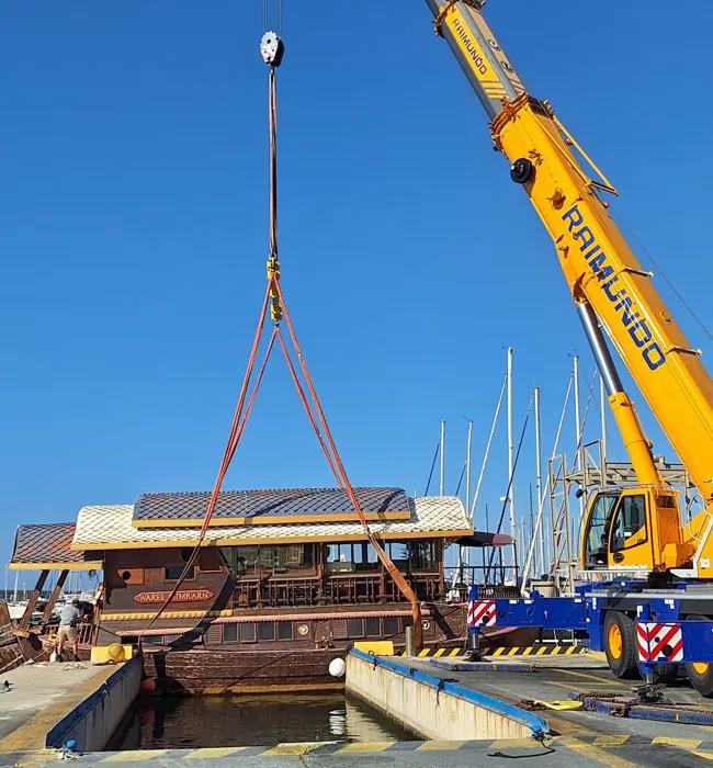 Divers, five support boats and a huge crane were required to transfer the wooden vessel, part of the landscape of the commercial and hospitality area for years, to a dry dock