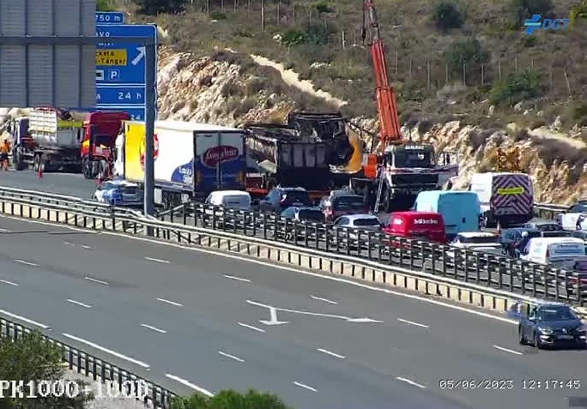At the moment, recovery crews are working to remove the burnt-out truck, which occupies the hard shoulder and the right lane of this section of the A-7, in order to fully reopen the road.