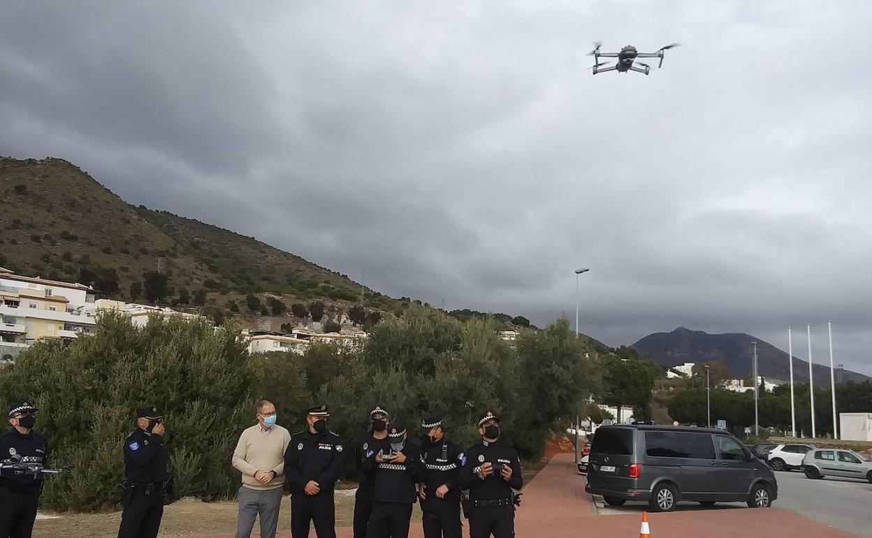 Councillor for Security, Javier Marín and the chief of the Local Police of Benalmádena, Francisco Zamora, together with the agents that make up the new Eagle Unit, gave a special demonstration of the two surveillance drones’ capabilities in Benalmádena on Wednesday.