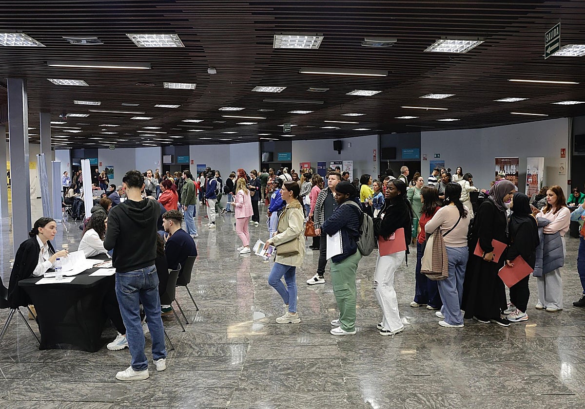 People from a variety of educational and professional backgrounds attended the Emplea Turismo fair at the Palacio de Ferias in Torremolinos, in the hopes of securing one of the 1,800 positions that the tourism industry on the Costa de Sol will need to fill before the start of the high season at the end of this month. The number of applicants, who queued in front of the stands of 70 companies, was around 1,500. Among them were students, recent graduates, people over the age of 50, as well as foreigners.