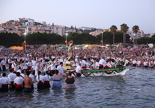 The disembarkation took place on Chanquete beach, followed by the land procession, first with women on the throne, and then with men. On this occasion, the procession did not go to the area of Las Cuevas, as on other occasions, but returned to its temple along Calle Mar and Avenida Juan Sebastián Elcano.