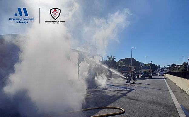 According to DGT (directorate-general for traffic) sources, a lorry started to burn on the Malaga-bound carriageway and the right lane had to be closed to traffic, causing several kilometres of traffic jams. The fire brigade worked in the area to extinguish the blaze.