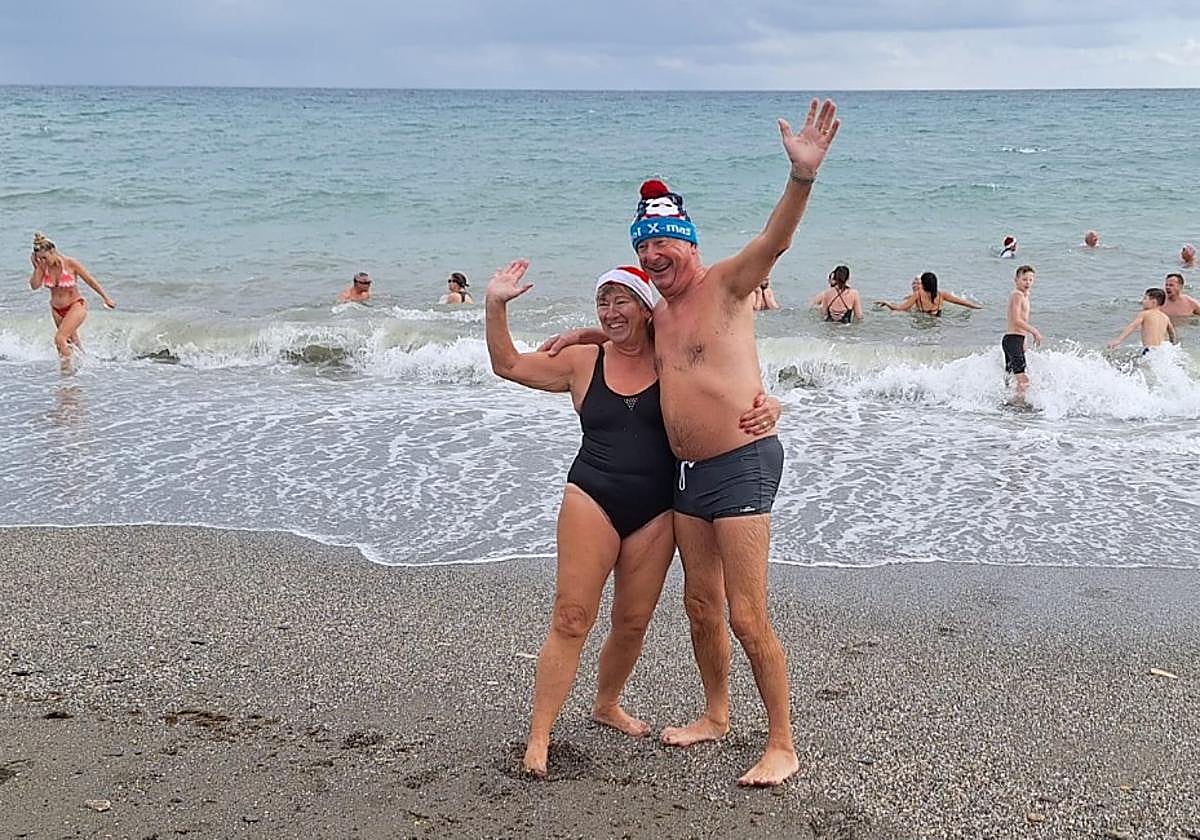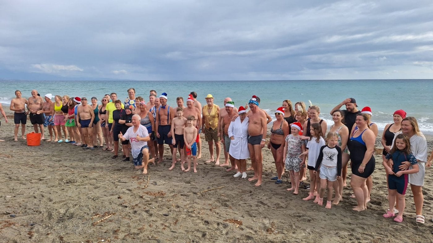 After rough seas meant that their traditional Boxing Day swim had to be cancelled last week, around 50 brave supporters of the Saint George Charity gathered on the beach in Sabinillas, Manilva, on New Year's Day for their annual festive dip.