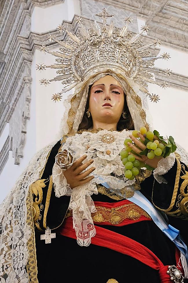 The image will be carried in procession to Calle Mar, where one of the most moving and unique moments will unfold: the popular offering of the finest bunches of grapes to the Virgin of Sorrows, with participants dressed in traditional attire. This offering reaches its highlight in the “bunch of grapes contest”, a long-standing tradition with strong involvement from local wine growers. The night concludes with a fairground-style party, set in a festive atmosphere of stalls and fair tents, featuring live concerts and DJs.