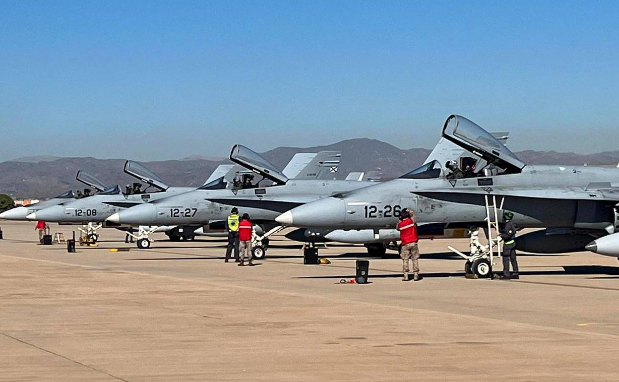 The planes, which have arrived today, are already lined up and ready to fly tomorrow. The person in charge of Wing 12, Commander Antonio Mancebo, said that the only thing that the public are going to notice is a little more noise than usual, because these planes are louder than commercial ones, especially when taking off and landing. For the rest of the time, the exercises will always be done over the sea, and only the minimum time necessary to land and take off will be flown over inhabited areas, given the proximity of the airport to the city centre. The planes will not be armed, so there is no risk. The exercises will simulate certain scenarios and responses to each of them, throughout the day, without set hours. For this, the commander clarifies that EF-18 aircraft are used, a model with an original American design, to which, under licence, Spain has made various modifications, especially in the 'software', to meet the capabilities established by the Ministry of Defence.