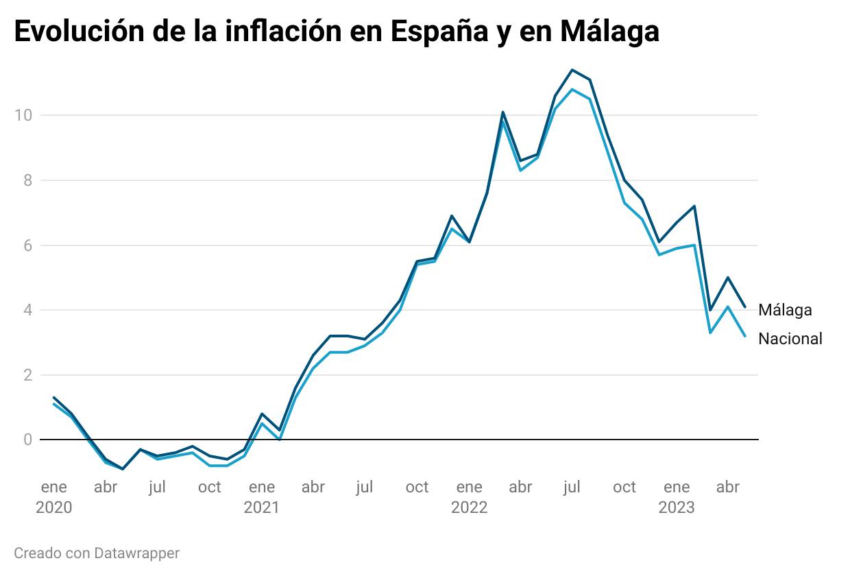 The general CPI figures for both Spain and Malaga are moving away from the maximum levels they reached a year ago, above 10% at national level and above 11% in the province, the figures also showed.