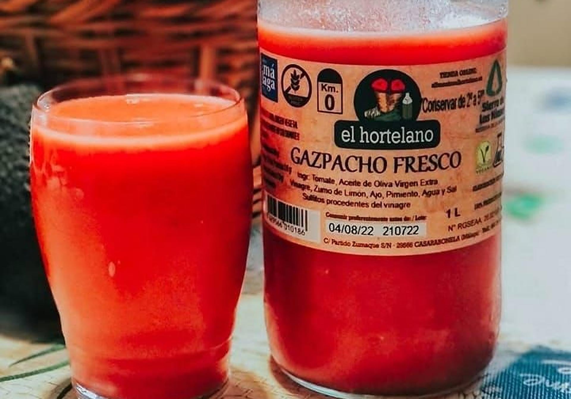 It has been made for almost a decade, using raw ingredients from the Sierra de las Nieves, specifically products from the village of Casarabonela. Its colour gives it away. More than 80% of its content is pure tomato. This is the recipe that Sebastián Gómez, owner of the shop 'Alimentación de Temporada' in Las Lagunas (Mijas) decided to market back in 2016. With its own health registration, his recipe has been sold in one-litre bottles ever since for the price of 3.90 euros. Unlike other gazpachos, this one contains neither cucumber nor bread. Its creator does not consider cucumber to be essential and he believes that including bread is more a nod to past times, when stale bread was used in many dishes in a subsistence economy. Moreover, as it does not contain this latter ingredient, his fresh El Hortelano gazpacho is suitable for coeliacs. Today it is sold in his own shop (Alimentación de Temporada) and also in some nearby supermarkets in Las Lagunas. It is also available in some places in Casarabonela, where he is the owner and where a large part of the raw material is sourced to make this soup. Through Frutas y Verduras Eladio, it can also be found in various restaurants in Malaga province.