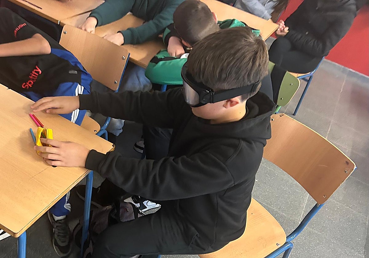 One of the activities carried out in the workshops for secondary school pupils involves using special simulation glasses. These glasses use specialised lenses and filters that distort vision in ways that replicate the symptoms of the effects of alcohol consumption and the impact of not sleeping for a whole night.