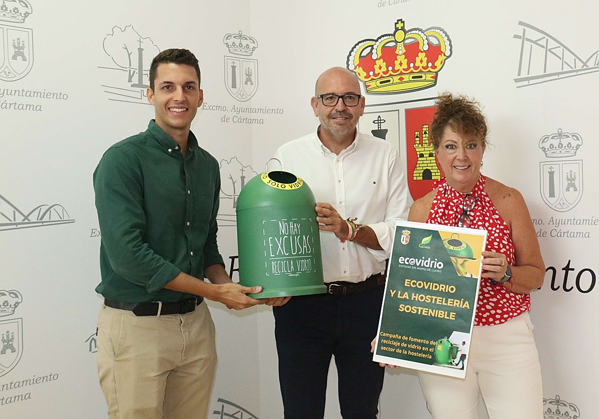 Cártama town hall and Ecovidrio, the company in charge of managing the recycling of glass packaging waste in Spain, have launched a campaign to promote the recycling of glass containers in the hospitality sector of the town. This initiative, which started on Monday (16 September), was announced by the town’s mayor, Jorge Gallardo, and the Ecovidrio representative for eastern Andalucía, Hugo Recio.