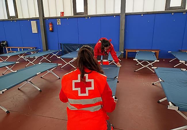 Municipal officials have been in the pavilion since early this afternoon, helping to assemble camp beds and prepare the space to accommodate families who may be forced to leave their homes. On Sunday evening three families had gone to the facility, although more residents were expected to arrive if the situation worsened.