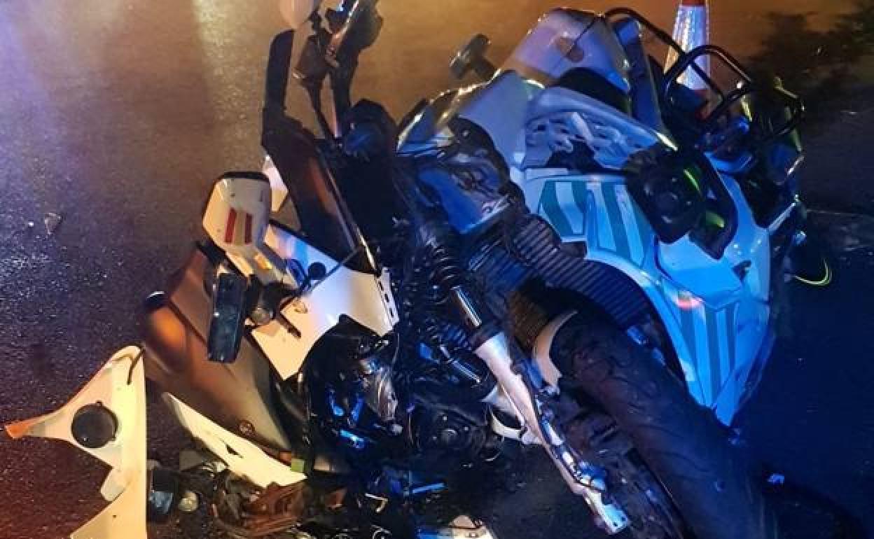Sources say the officer, 57, suffered a dislocated elbow, injured ankle and bruising in the crash. He has now been released from hospital, but there is no information about the condition of the other driver.